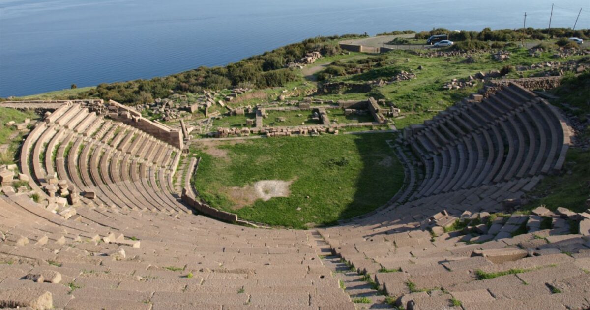 İÖ II yüzyılda Agora'nın yakınına kurulmuştur. Son yüzyıla dek tümüyle korunan yapı, günümüzde restorasyon çalışmalarıyla kullanılabilir hale getirilmeye çalışılmaktadır. Geleneksel Grek tiyatro planına uygun olara, at nalı biçiminde olduğu sanılmaktadır. Roma döneminde yenilenmiştir.Zaman zaman ASSOS'la ilgili etkinlikler bu mekanda yapılıyor.